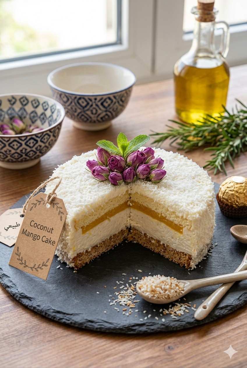 كوكونت كيك مانجو كيكة استوائية منعشة تجمع بين قوام الكيك الطري والكريمي مع نكهات طبيعية وغنية. تتكون من طبقات كيك رطبة خفيفة، ممزوجة بطبقة كريمية غنية بنكهة جوز الهند، مع لمسة مانجو طبيعية تضيف حلاوة منعشة ونكهة فاكهية متوازنة.
